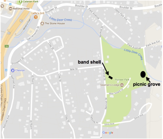 picnic grove area. Pioneer Park's field in front of the band shell has